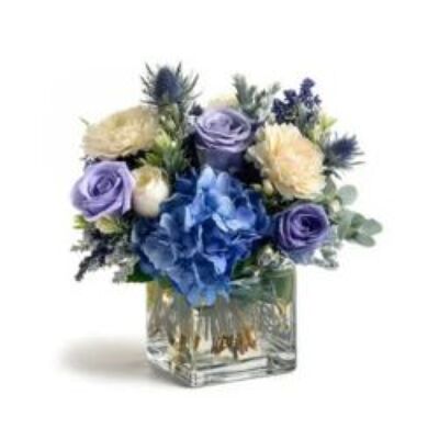 Textural accents and calming tones make this a perfect winter piece for gift-giving or decorating